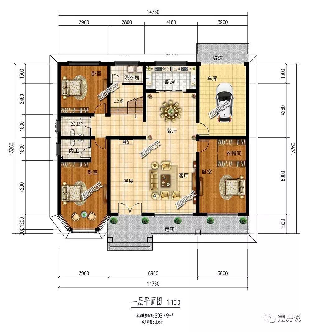 开间14.76米,进深13.26米