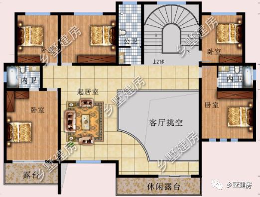 二层:设计了五间卧室,一间起居室,一间公卫。
