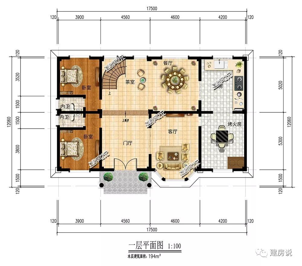 一层:整体动静分离,空间划分合理,另外设有烤火房,冬天可以御寒保暖。