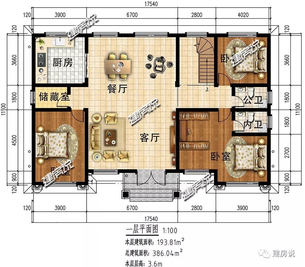 一层:宽敞的客厅便于家人们进行日常活动;3卧室,主次分明;储物间让家里更加整洁有序。