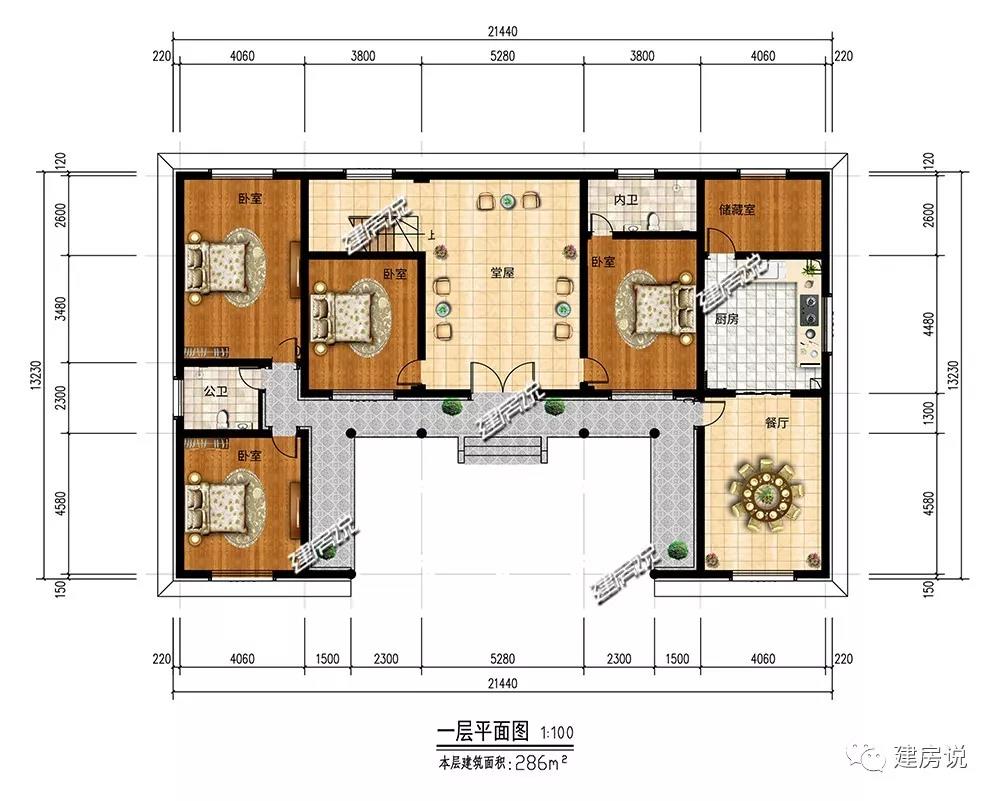 开间21.44米,进深13.23米