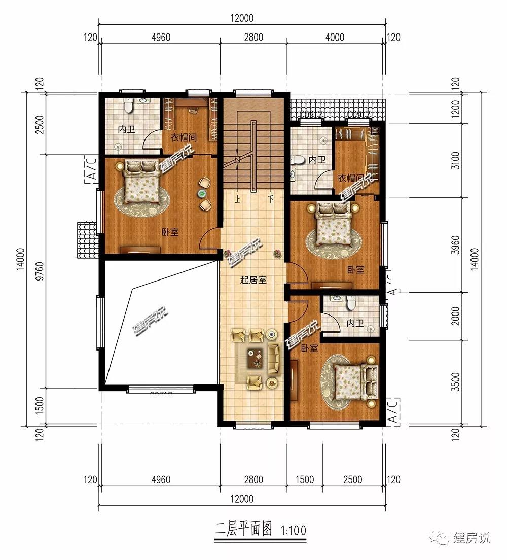 二层:3间卧室布局合理,均带内卫,提升舒适性;挑空客厅复式层,让室内更加通透明亮。