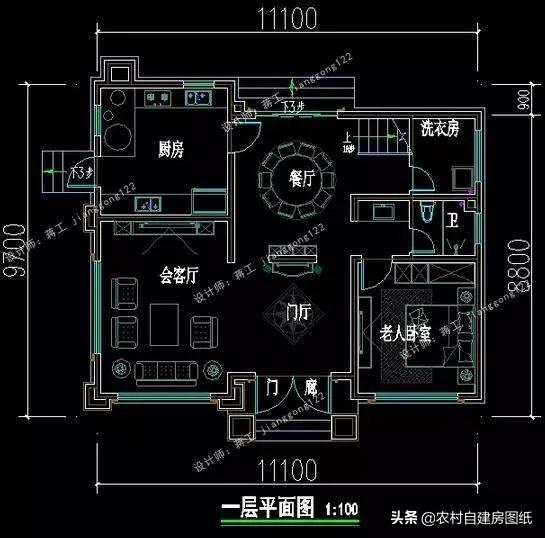 一层:门廊连着入户门厅,门厅设有神龛,符合农村的生活习俗。