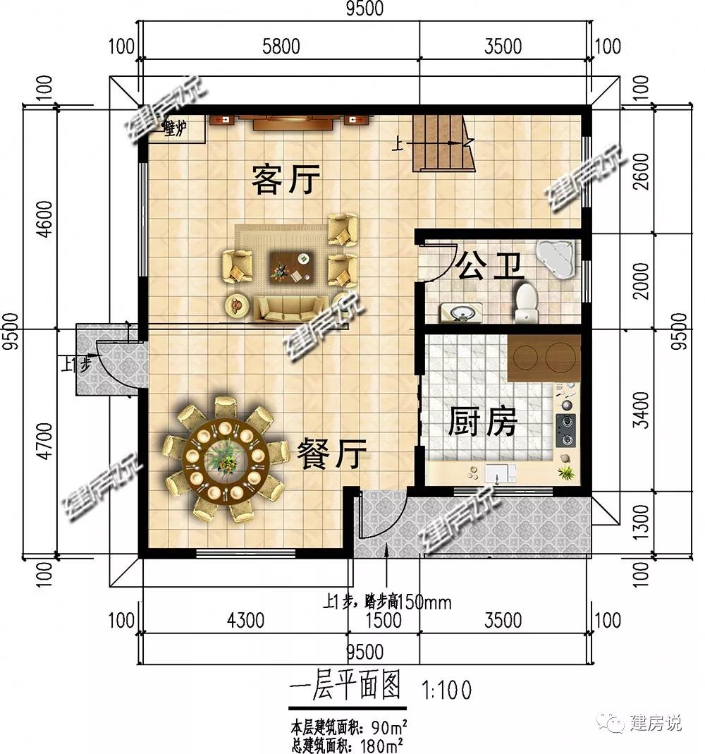 一层:客厅温馨紧凑,设有壁炉,方便取暖;餐厅面积宽敞,用餐环境愉悦。