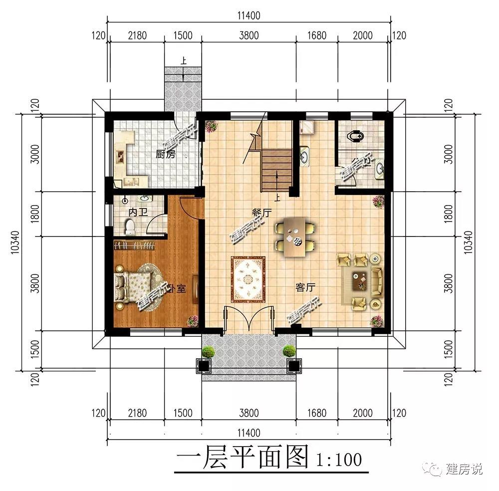 开间11.4米,进深10.34米