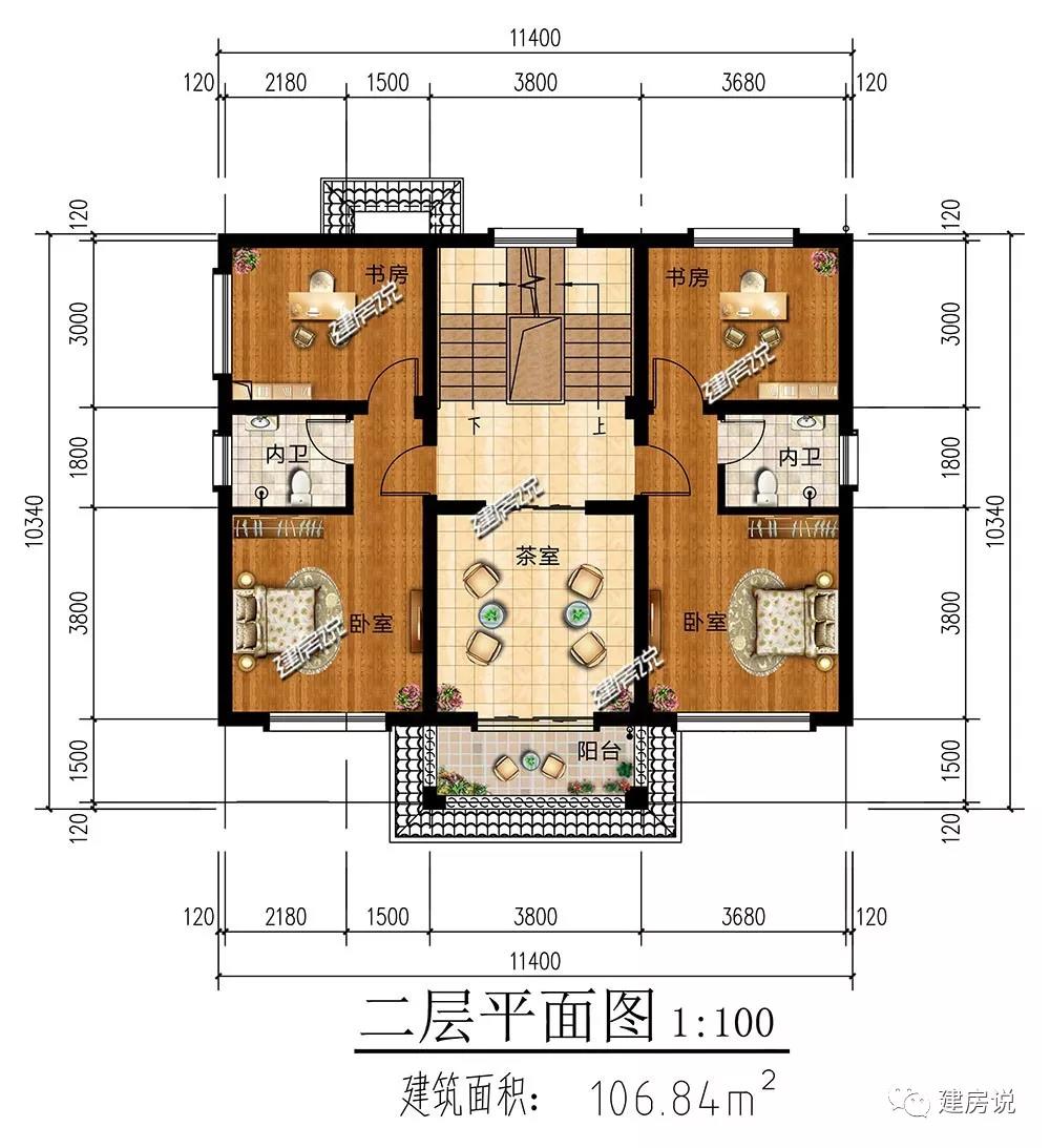 二层:设有2个卧室,卧室内都设有书房,书香气息满满;茶室便于充实闲暇时光与培养心境。