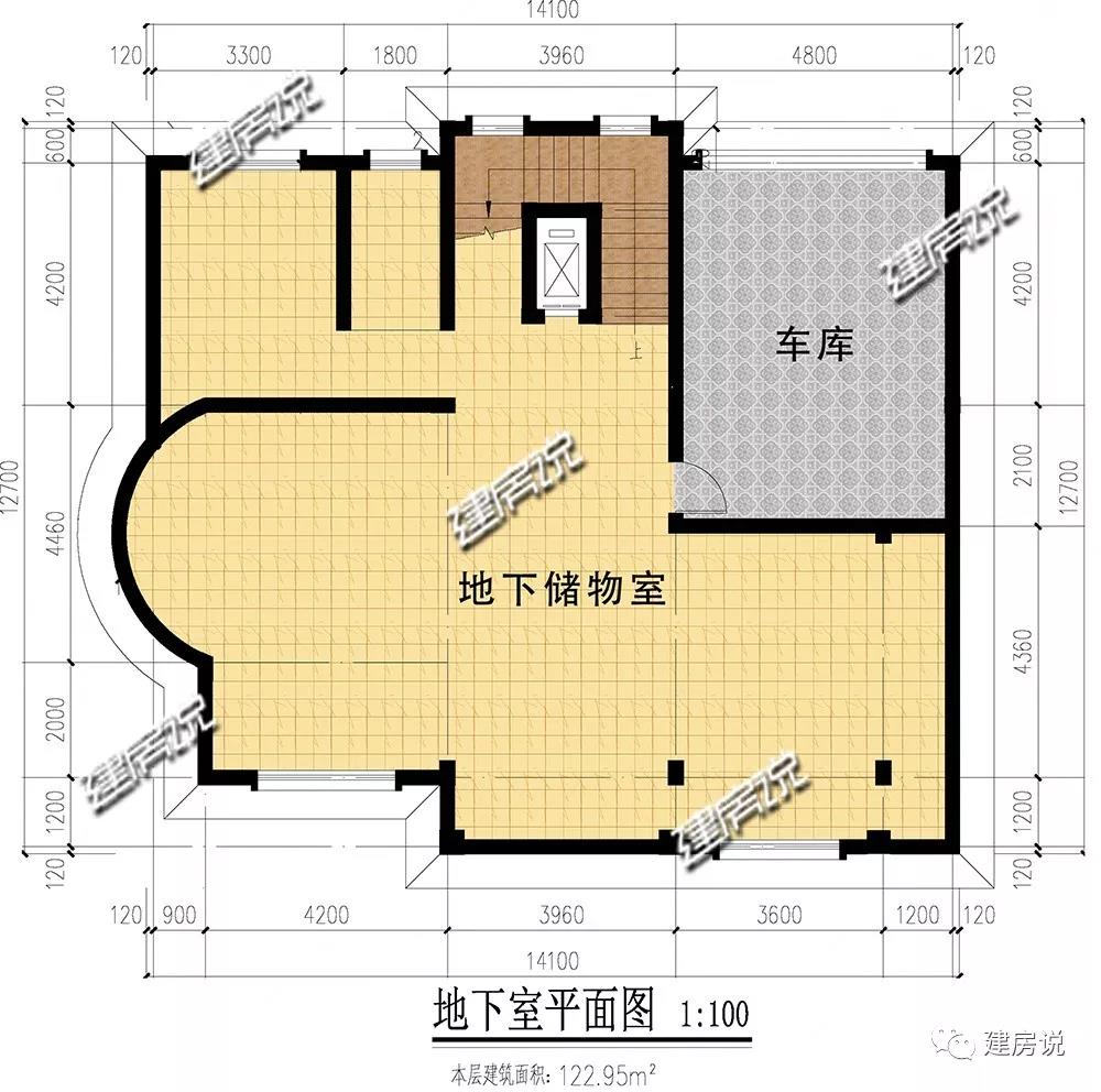 地下室平面层:自带车库,方便泊车;宽敞空间可按自己兴趣打造酒窖、储藏室等。