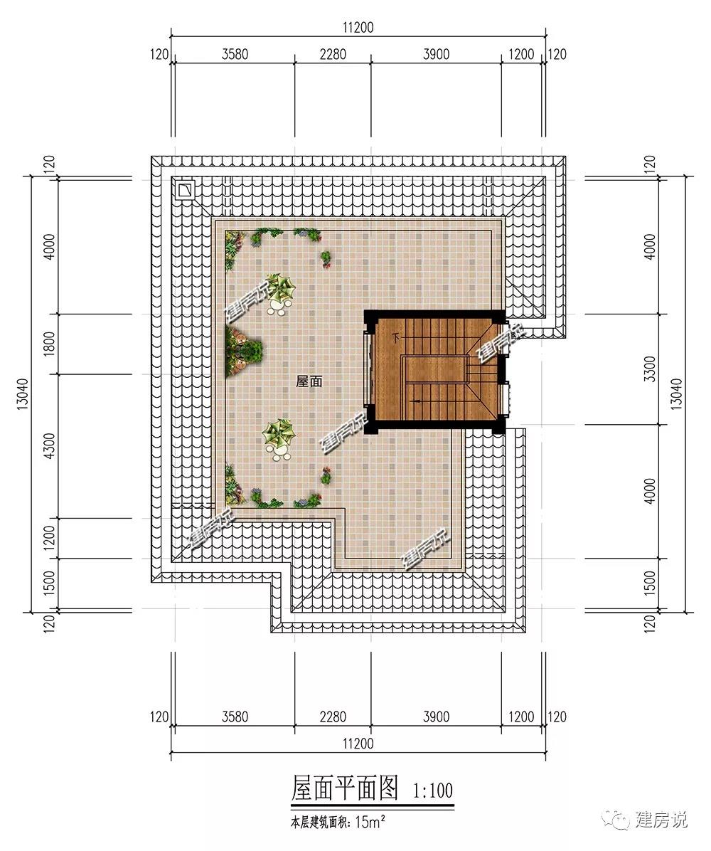 屋面层:宽敞空间适合晾晒衣物,种植花草。