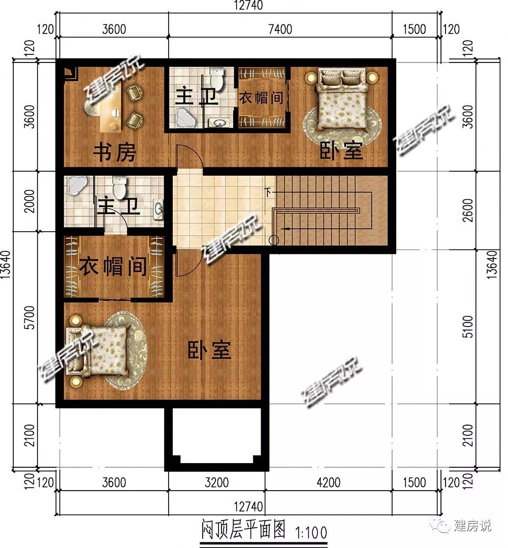 闷顶层:2间卧室,都设有单独的卫生间,居住无忧。
