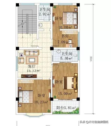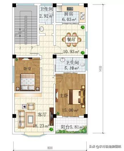 二层:为套间设计,可以自住可以出租出售。套间内设计有2间卧室,2个卫生间,客厅、厨房、餐厅和阳台。