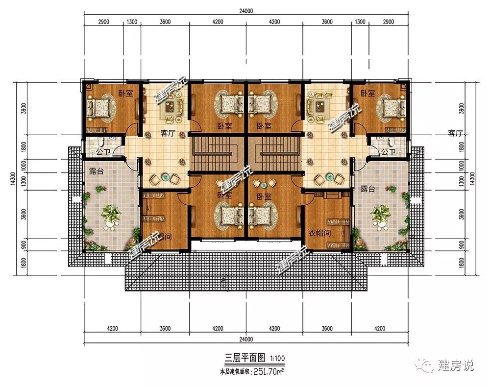 三层:设有3间卧室,主次分明;宽敞露台适合打造空中花园,晾晒衣物。