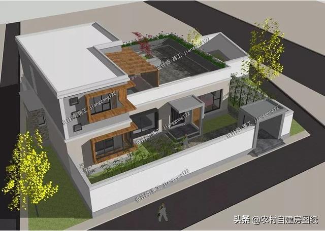 这是一款简约现代风格农村别墅,立面用清水墙和木质花架窗套打造出极致的工艺气息,空间留白的设计,展现出开阔通透的心境,置身其中,如入桃源又一村。白色的院墙,院内两侧种满一排排清竹,居不可无竹,让户主的生活层次都变的高雅。