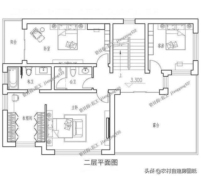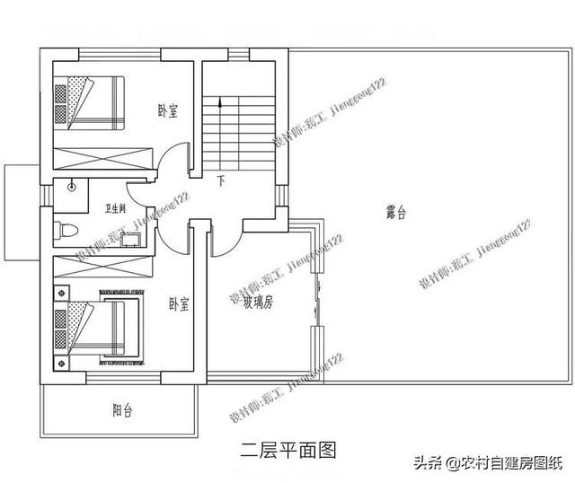 二层:设计有2间卧室,超大的屋顶露台和阳光房,可以在屋顶做个泳池,不管是夏天还是冬天都非常享受。