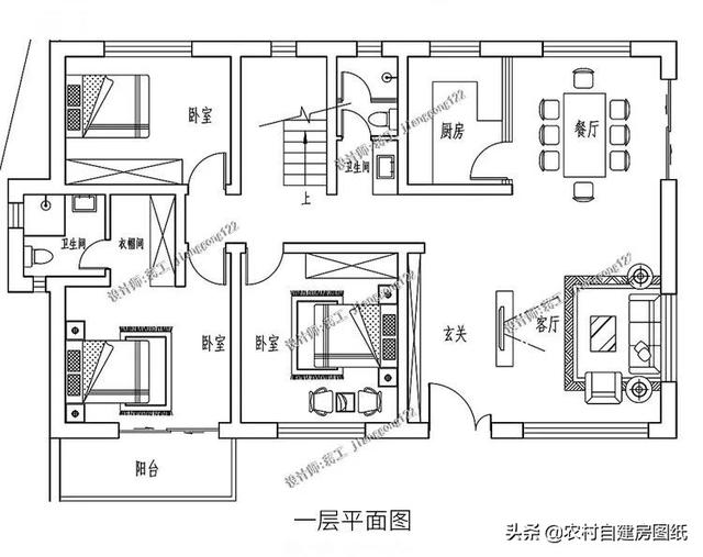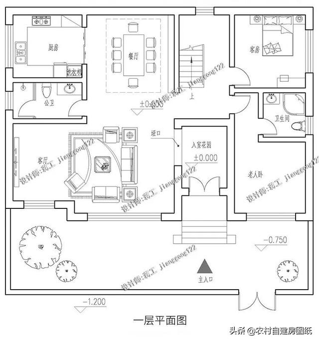 一层:设计有3室2厅2卫,动静分区舒适度极高