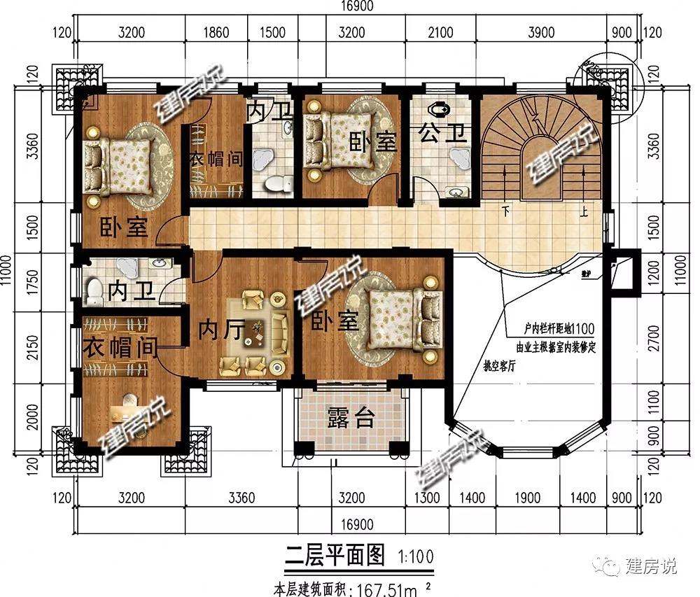 二层:3间卧室,主次分明;挑空客厅搭配旋转楼梯,提升别墅档次,打造一个高大上的家。