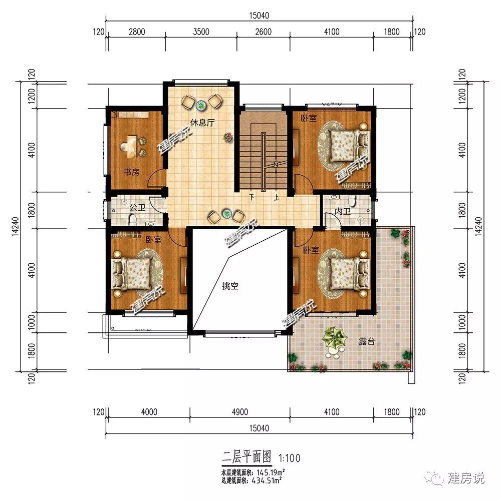 二层:设有3间卧室,卧室外的露台设计,便于通风与采光;休息室便于家人之间联络感情;书房可供工作、学习;挑空客厅复式层,让室内更加开阔。