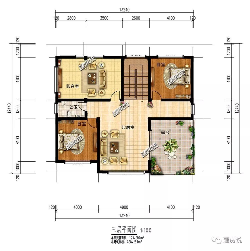 三层:2卧室,大小适中,居住舒适舒心;起居室可供日常活动的进行;影音室丰富一家人生活;露台的设计,让观景晾晒两不误。