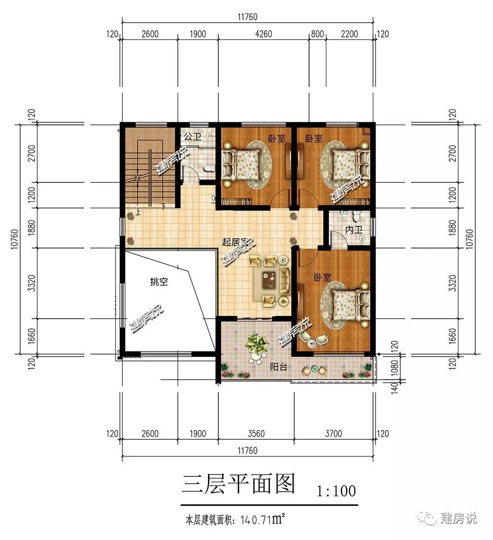 三层:挑空客厅尽显豪宅范;起居室方便家人沟通感情;设有3间卧室,主次分明。