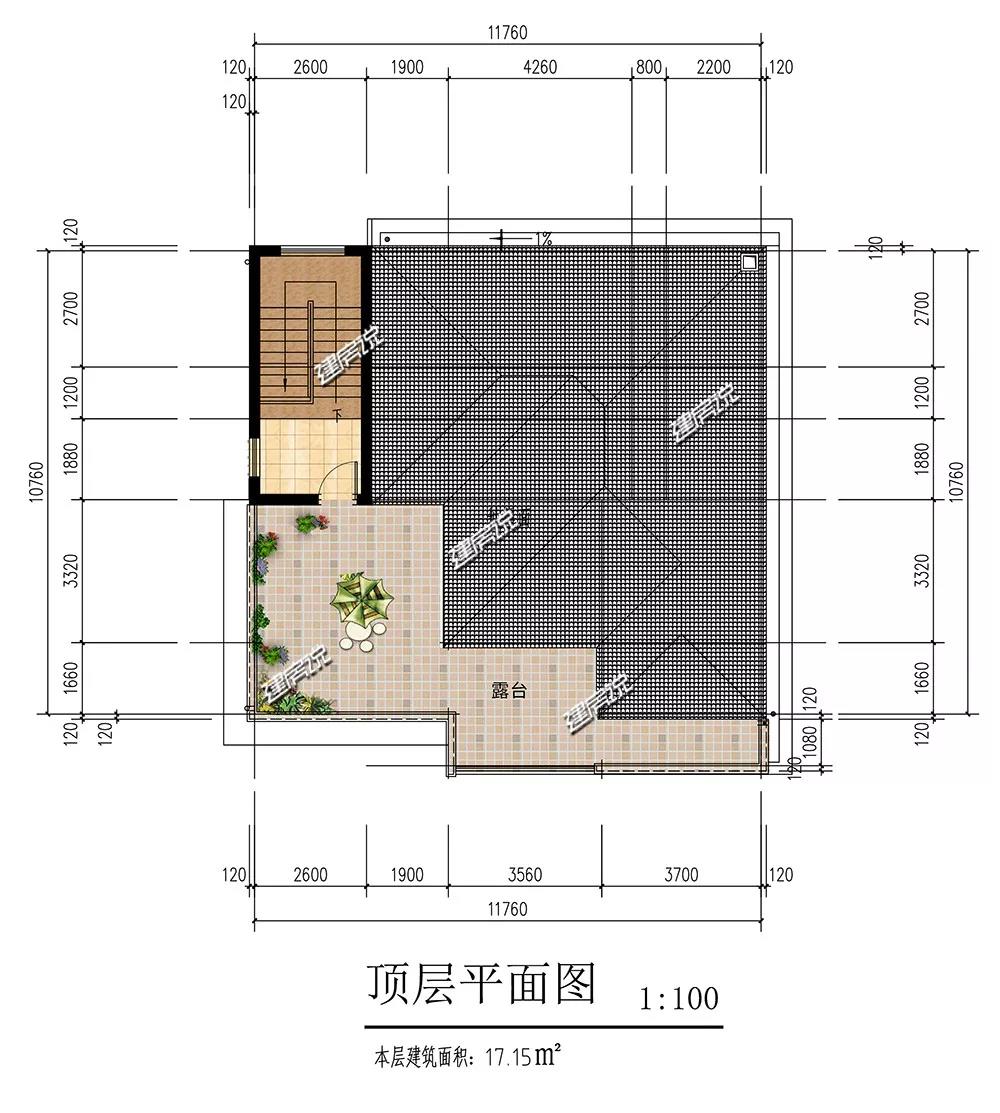 顶层:宽敞露台可晾晒衣物,种植花草,又是一番美景。
