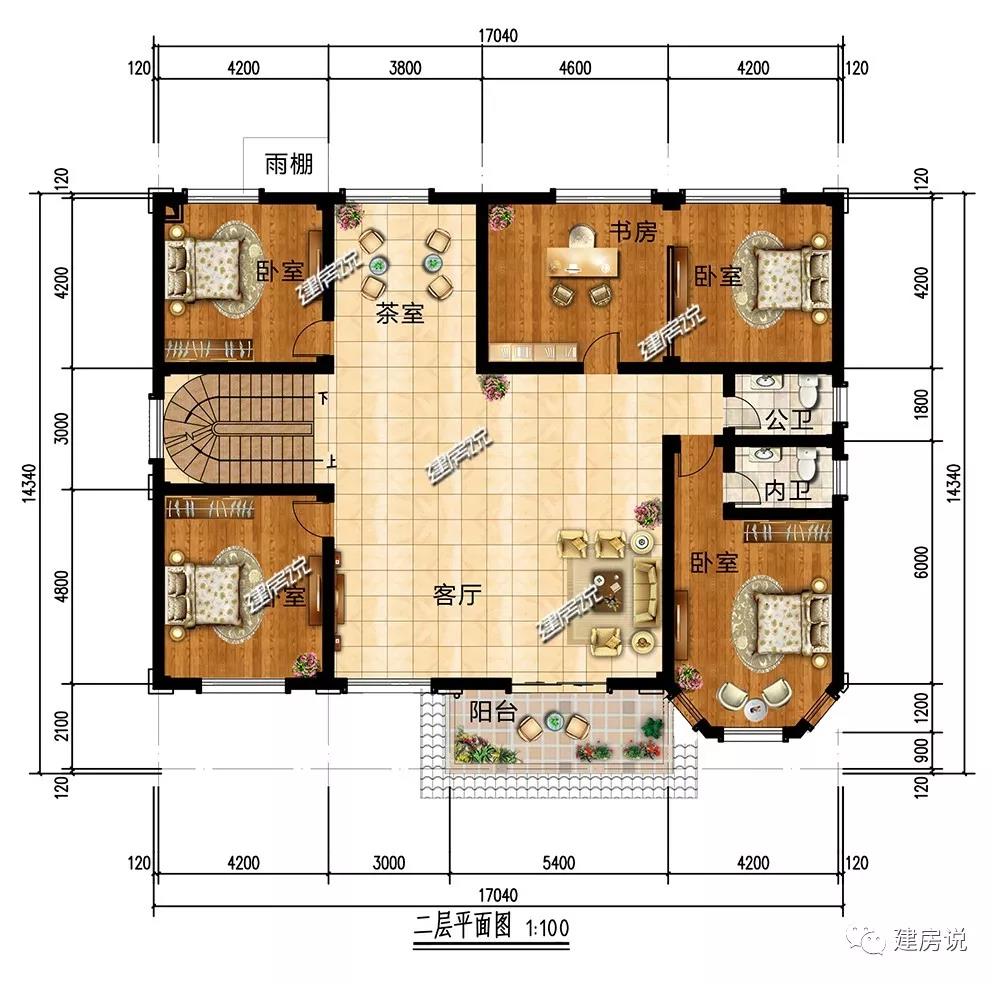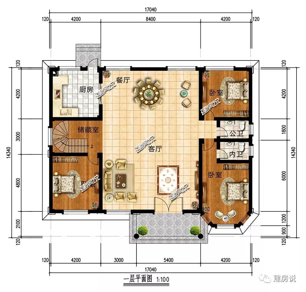 开间17.04米,进深14.34米