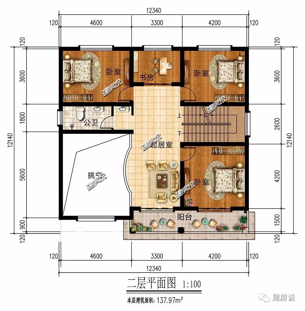 二层:挑空复式楼大气通透;3间卧室,主次分明;书房适合学习办公;起居室方便家人日常活动;阳台适合晾晒和观景。