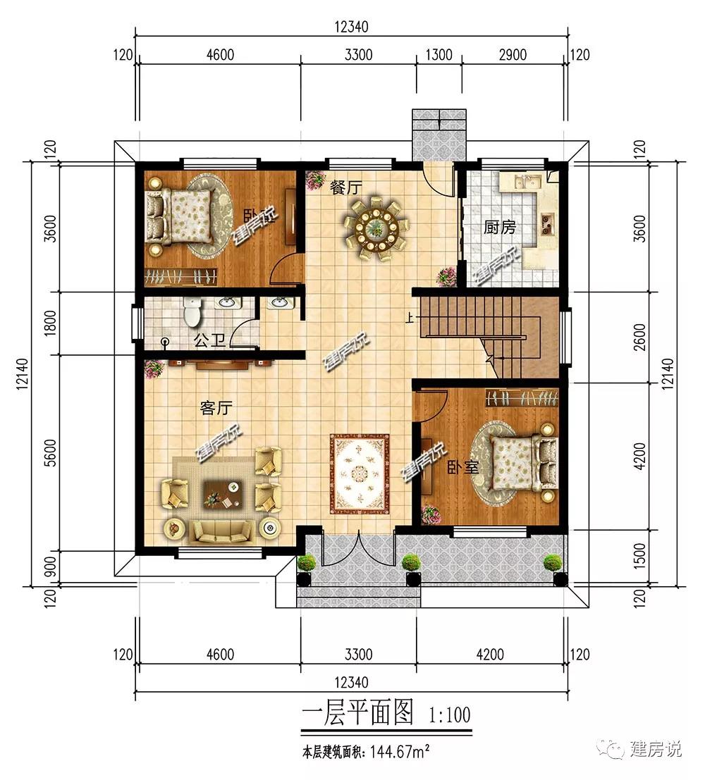 开间12.34米,进深12.14米