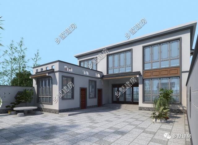 现代别墅跟中式别墅一直以来,广受我们现代年轻一辈的喜爱,随着进一步的发展,农村的传统住宅,早已不适合我们了。今天小编介绍一款,这两者结合到一块的别墅款式。这是一套两层现代与中式结合的别墅,整体简约时尚。外墙大门,是传统中式建筑风格。主体是一栋两层结构,配一偏房,在实用的同时也更加美观。偏房屋顶设为露台。庭院是中式别墅的精华,栽种上一些花草竹菊,生活更加惬意。