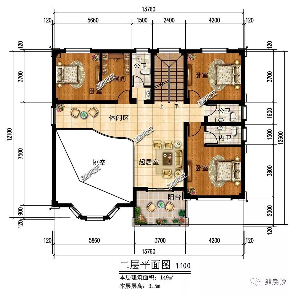 二层:挑空客厅复式层,通透明亮;3间卧室,主次分明,布局合理;起居室方便家人休闲娱乐;露台便于欣赏乡村靓丽景色。
