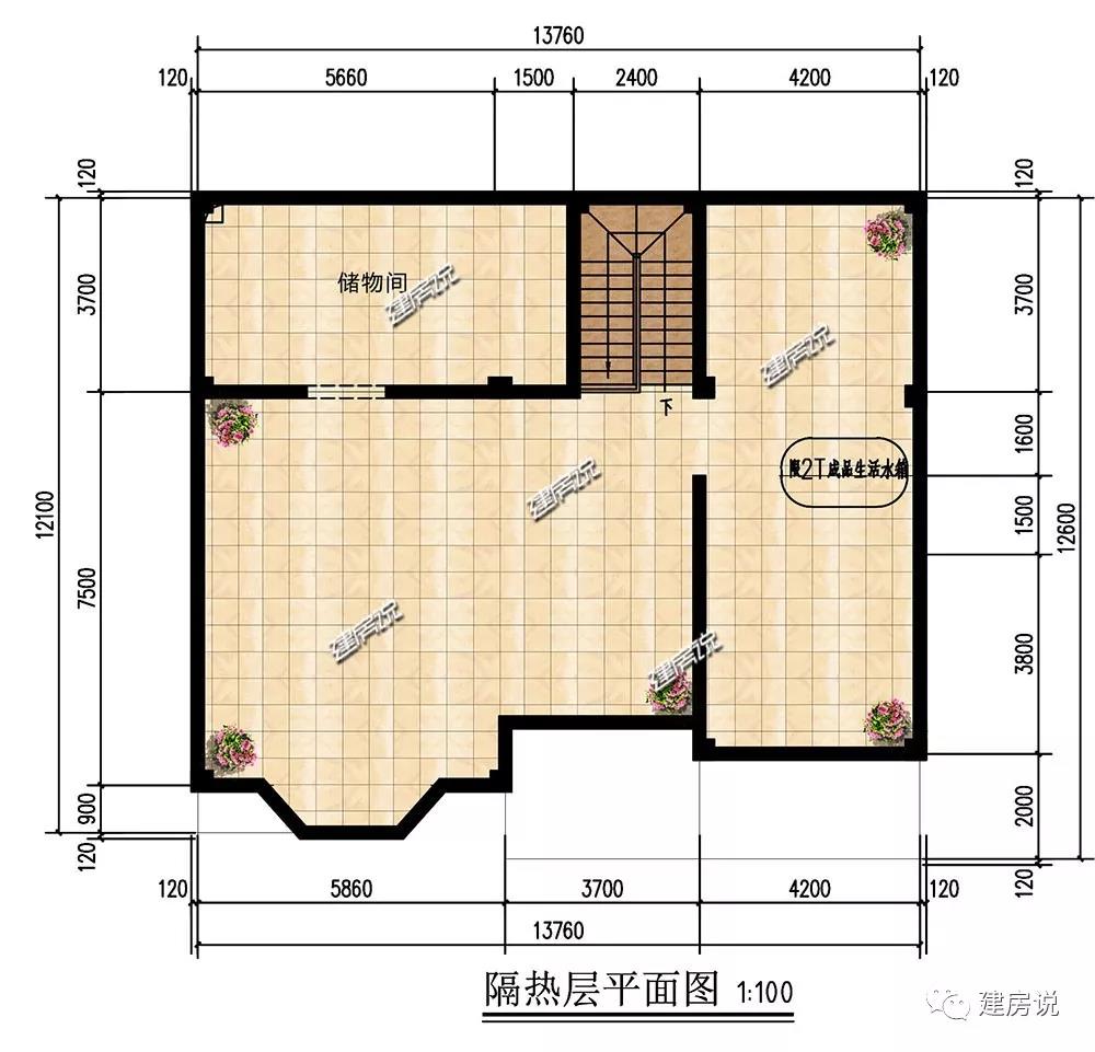 隔层:面积宽敞,储物空间充裕,生活井井有条;成品水箱位的设置,便于生活用水的储存。