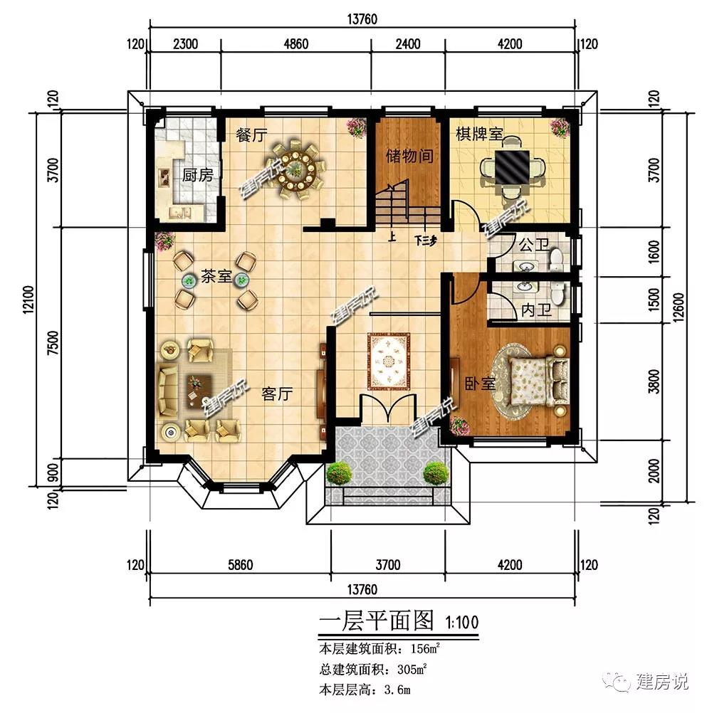 一层:大气宽敞的客厅和茶室,方便接待好友;棋牌室为家庭生活增添乐趣;独立的车库方便日常出行用车、停车。
