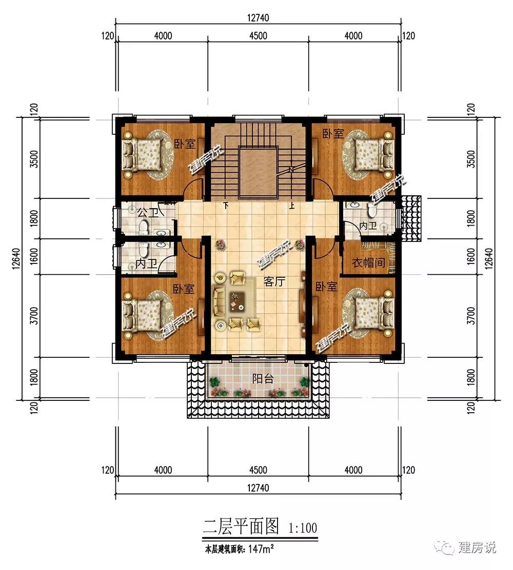 二层:设有4间卧室,主次分明;宽敞客厅方便家人沟通感情;阳台保证了充足的采光。