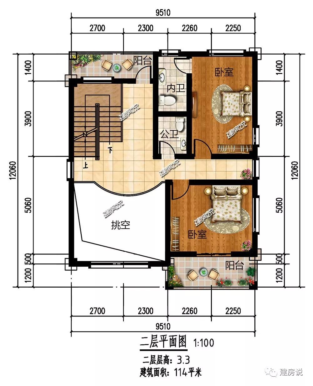 二层:设有2间卧室,大小合理;挑空客厅,大气通透;阳台加强采光通风,也可与家人共赏乡村美景