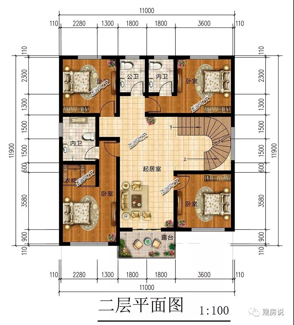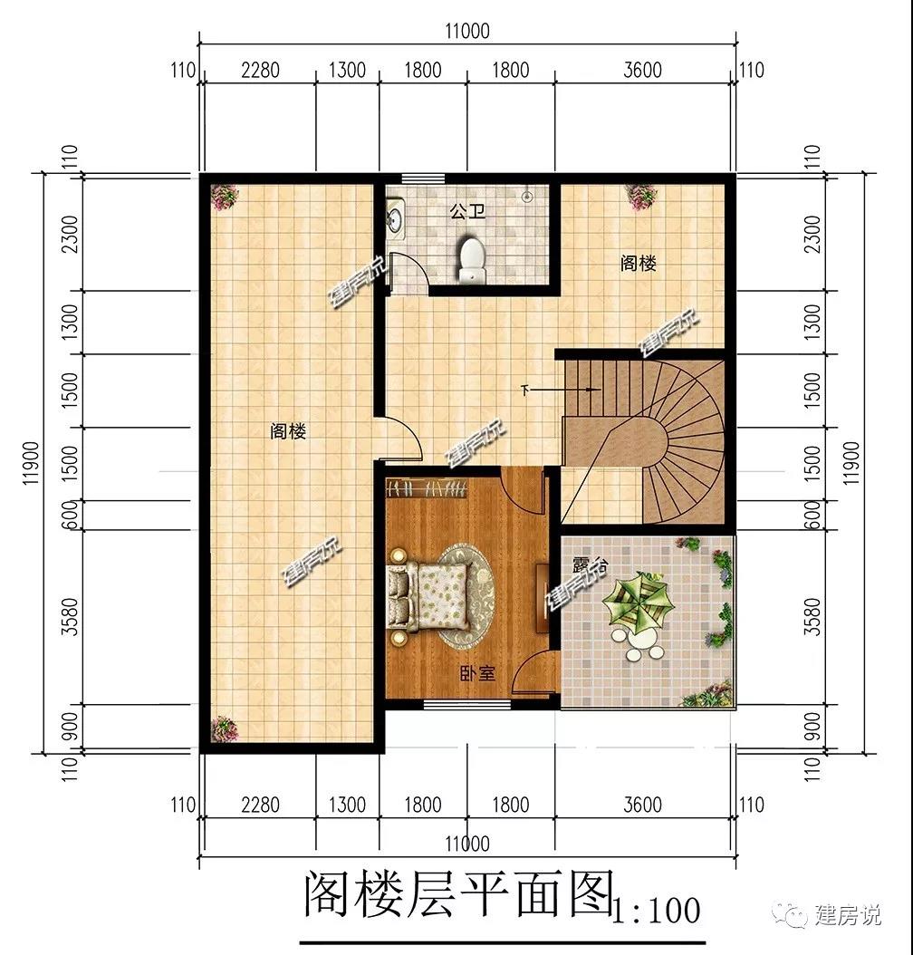 阁楼层:设有卧室连着露台,晾晒和观景两不误,温馨明亮;阁楼可以按自己的喜好布置。