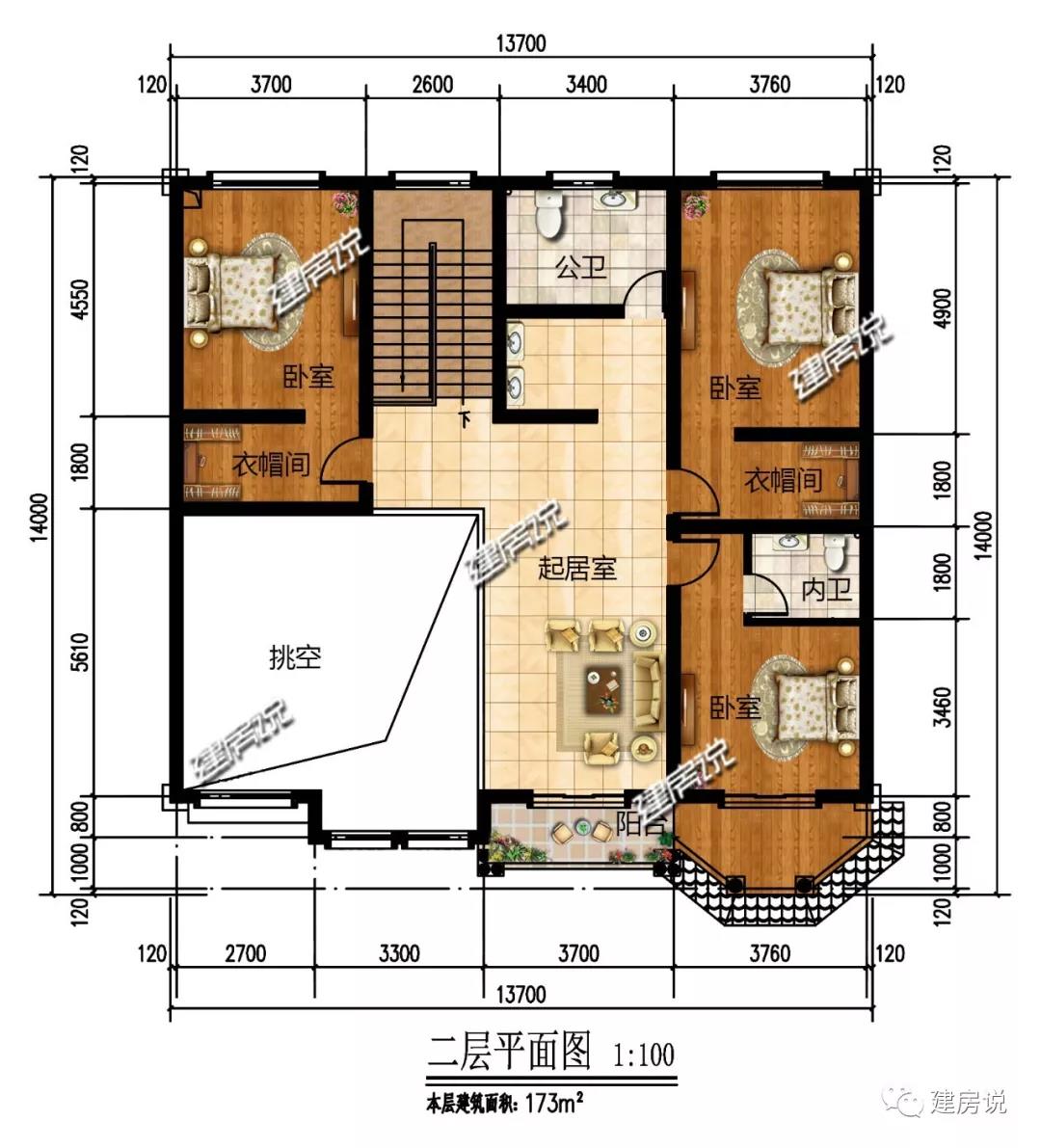 开间13.7米,进深14米