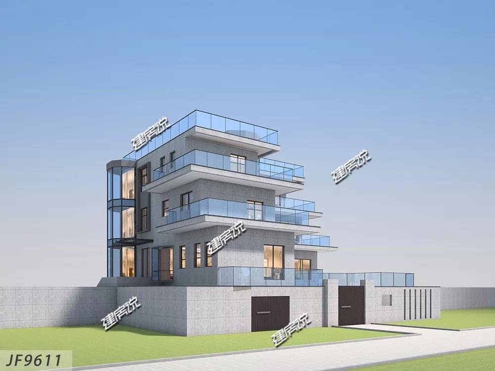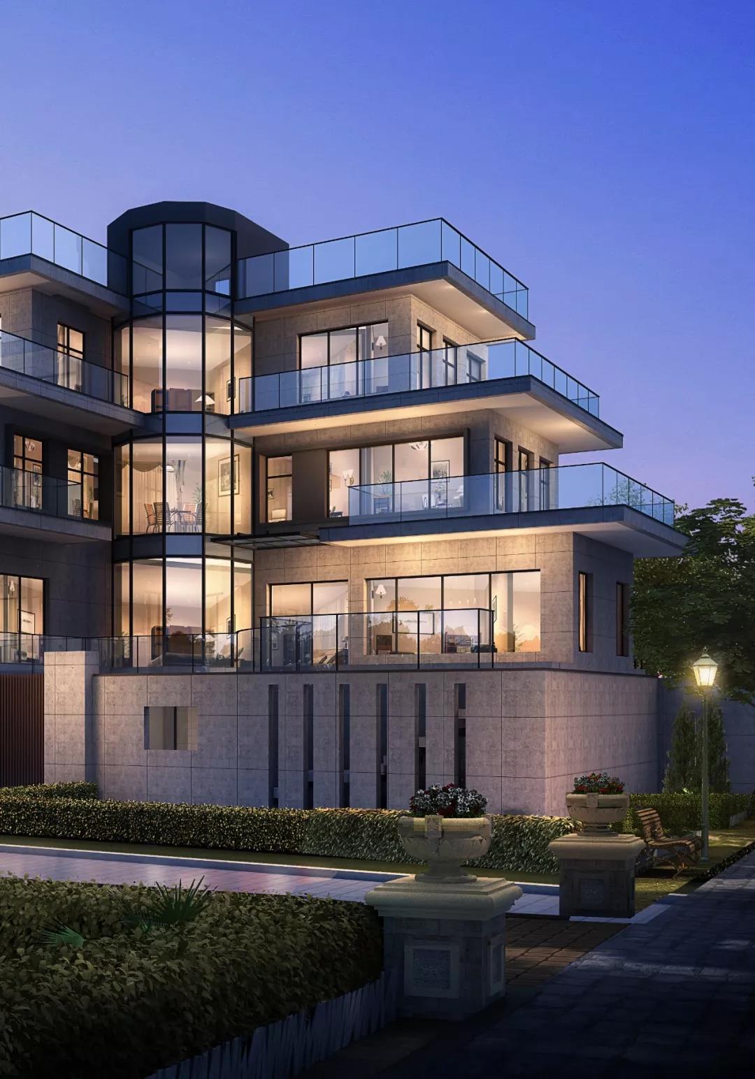 别墅外墙主体用灰色真石漆装饰,简约而不失腔调,多窗多露台,采光通风没得挑,最后配上一些暖色灯光打造温馨室内。