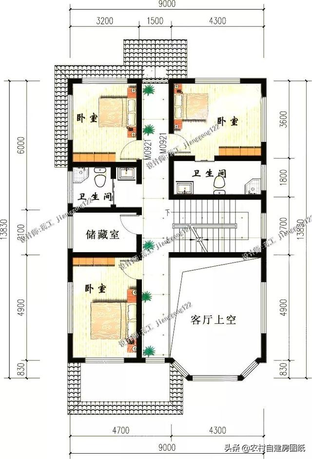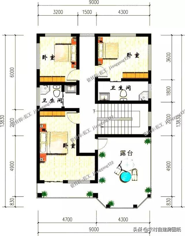 三楼的布局和二楼大致差不多,不过增加了一个大露台,喜欢大露台的小伙伴们也可以考虑这一款了。大露台不仅可以当农村人的晒谷之地,也可以当闲聊之地。