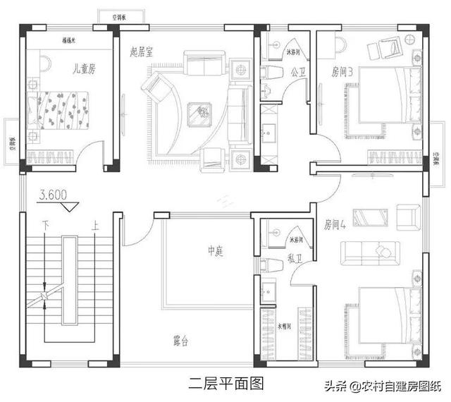 二层:二楼就和平常的别墅一样,设为专门的起居生活之地了,毕竟住的地方还是要考虑住的房间嘛。