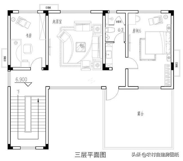 三层:三楼也有房间,可以作为备用房间,还设有书房,想静静看书的时候可以上三楼