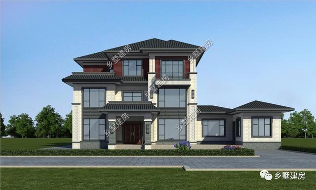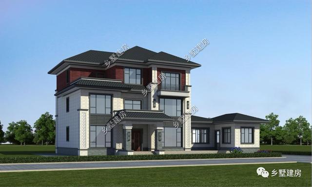 有钱了,还买什么房子,现在都是自建别墅。农村建一个毛坯房也就3到40万,贵的一百万左右。今天小编就推荐一款三层别墅来看看吧。这款别墅属于新中式风格的,外表大方简洁,一眼就能看出中国文化的内涵。外观是传统的白墙黑瓦,干净规整。三层用红色真石漆颜色更加出挑,使房子不再色彩单调。整栋建筑透漏出江南民居的婉约。建一栋在村子里,漂亮!