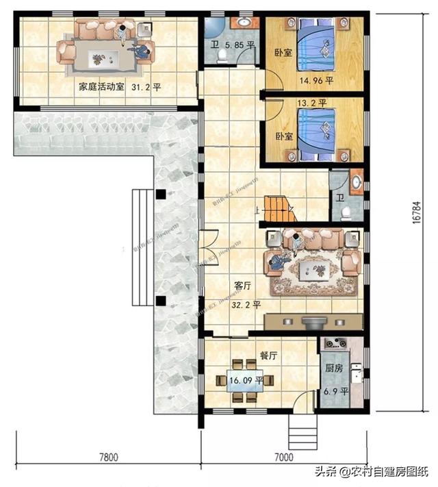 占地尺寸:14.8m×16.78m