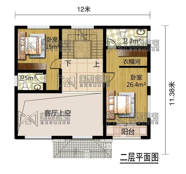 二;层设有两间带独卫的卧室,一间阳台。两个房间都带有独卫,大卧室还自带阳台衣帽间,屋主的日常生活可以非常舒服。