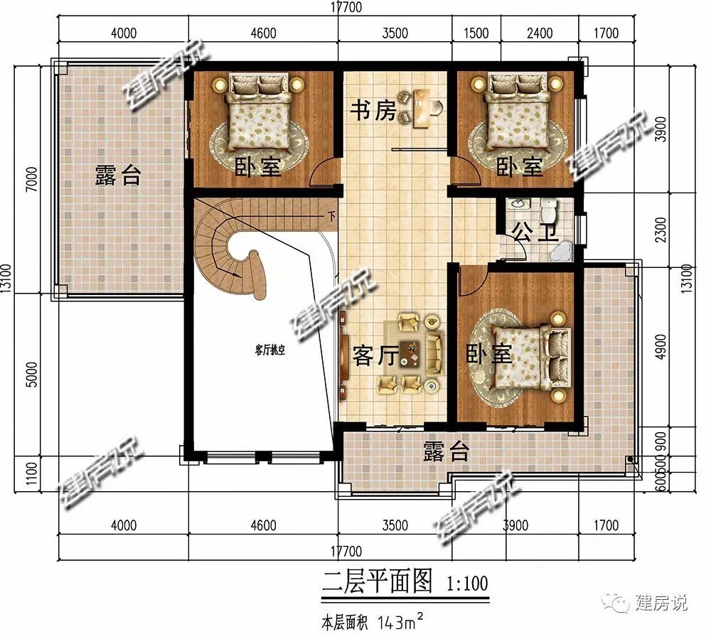 二层:挑空复式楼提升别墅的档次;3个卧室大小合理;阳台通风采光效果好,观景视野开阔;超大露台,可打造空中花园。