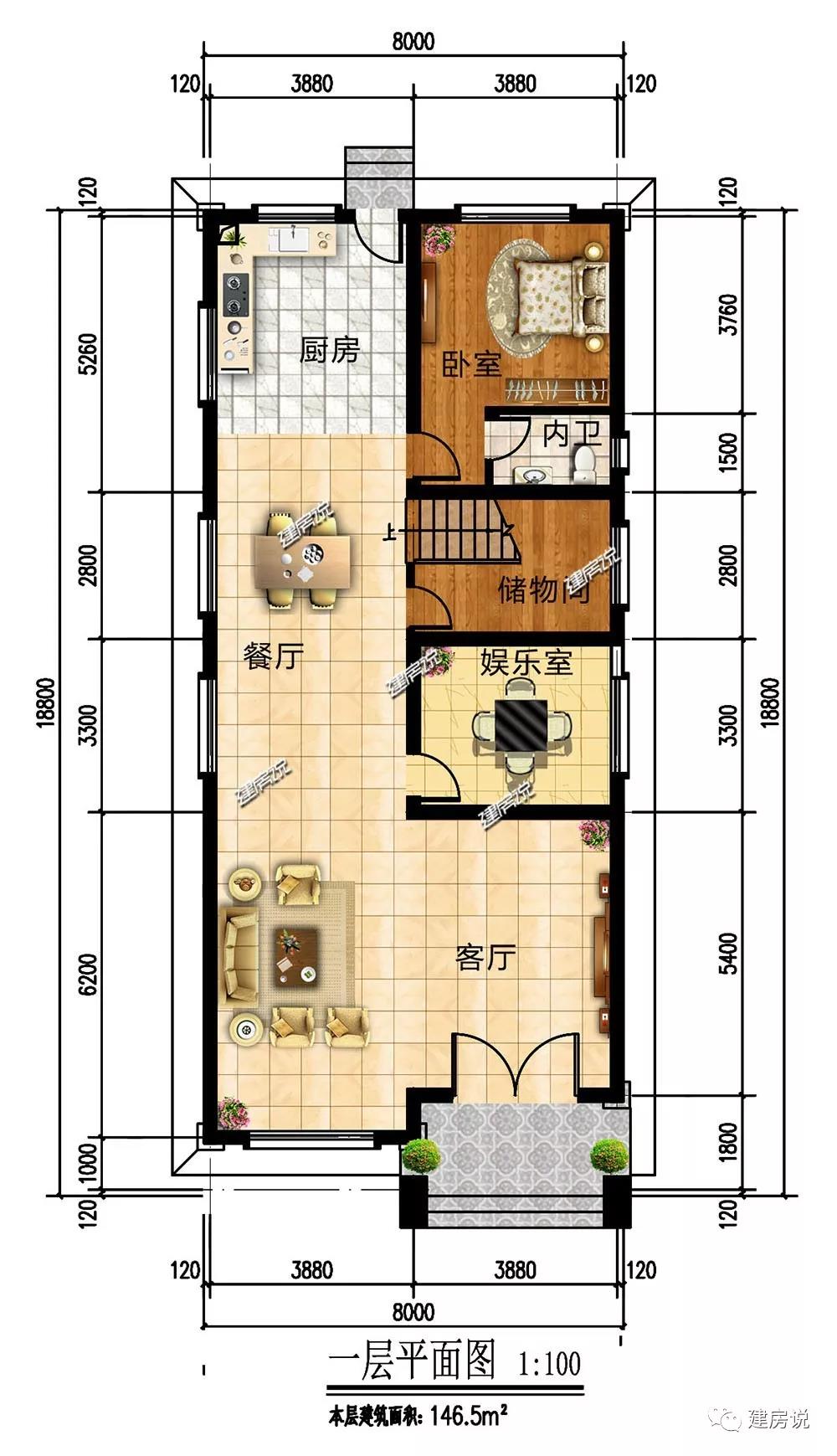 5、开间8米,进深18.8米