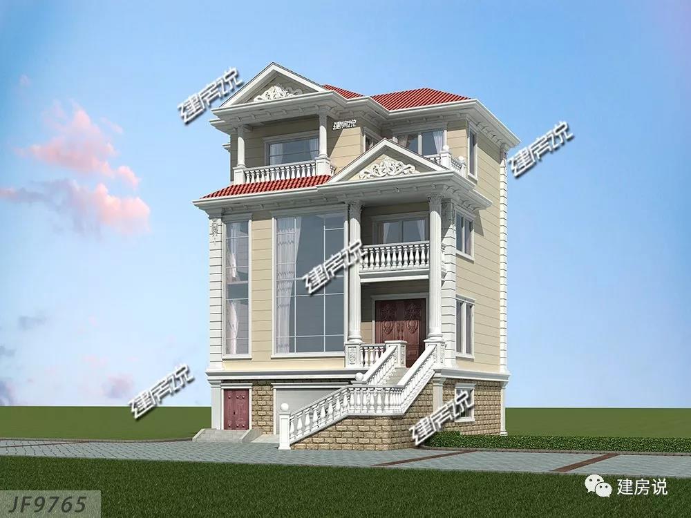 今天小编给大家推荐一款特别好的小面宽别墅,谁说小面宽不好。建别墅面宽不是问题,只要有合格的图纸,不偷奸耍施工队,就不愁建不出好别墅。来看看这款别墅吧,不仅有车库外观还特别靓呢。别墅的外墙以白色和黄色真石漆搭为主,罗马柱设计很霸气、精致的山花点缀跟架空层台阶入户,更使得别墅霸气十足。