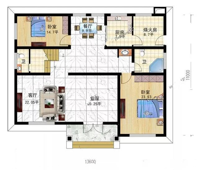 占地尺寸:13.6m×11m