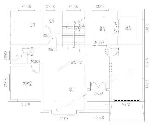 一层:客厅,棋牌室,车库,餐厅,厨房,内卫,主卧入户即为玄关,玄关在这里起到了一定的隔断作用,使室内空间具有一定的神秘感。紧接着就是挑空大客厅,客厅的窗户是挑空落地窗的设计,采光面大,使整个空间看起来更宽敞,更舒适,西北角的卧室适合做为老人房,附带内卫方便老人的日常起居。