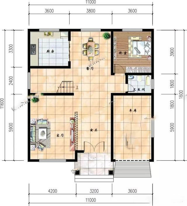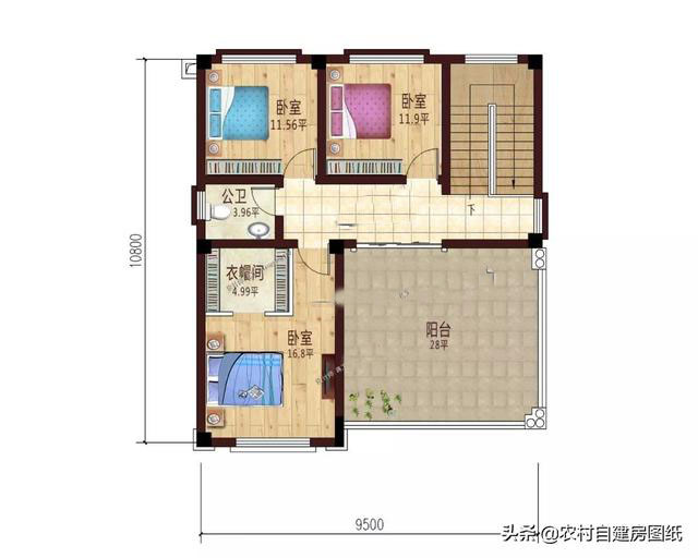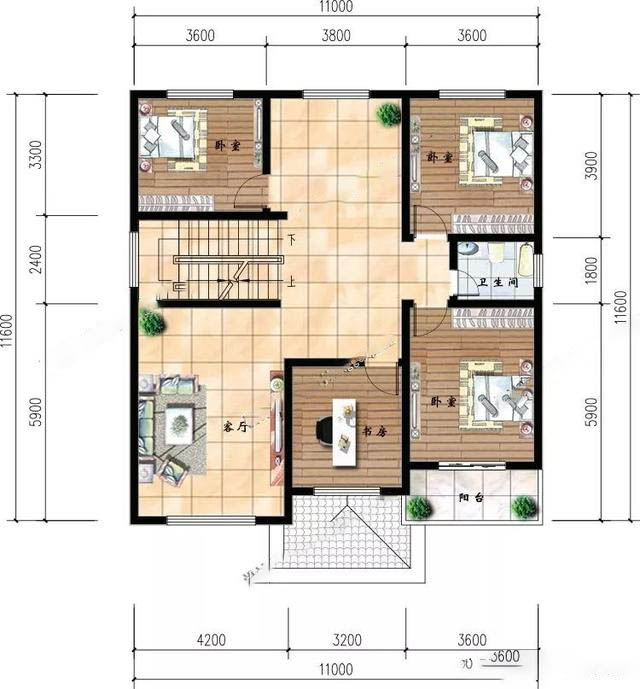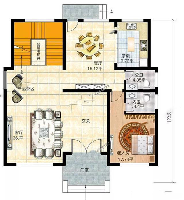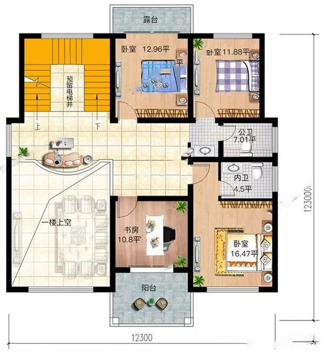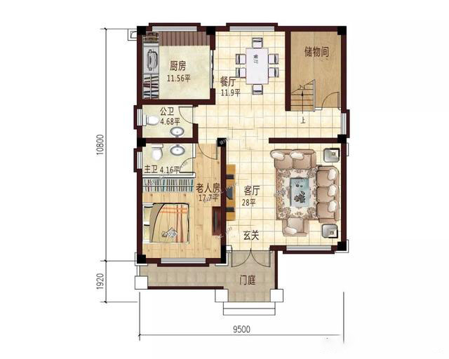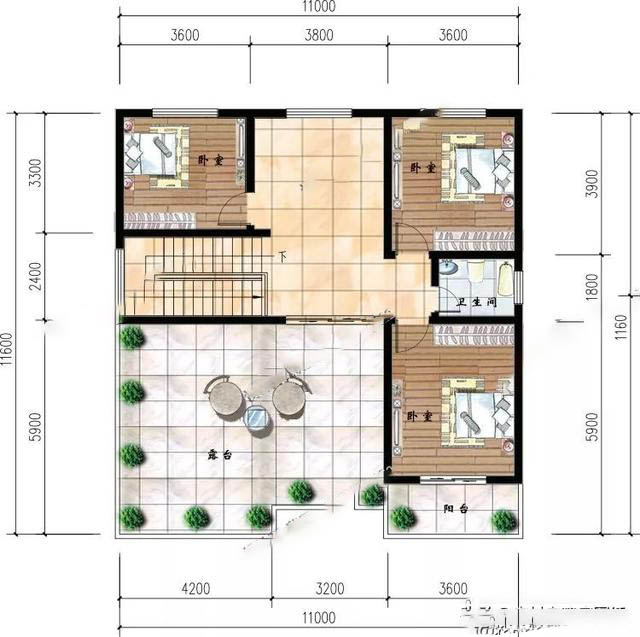 一楼设计了专门的老人房,附带一个内卫,使老人生活更加方便,挑空大客厅搭配玻璃窗,整个建筑的气势又提升了不少。2,3层各有三间卧室,是一个静态功能区,避免了一些外界的干扰。