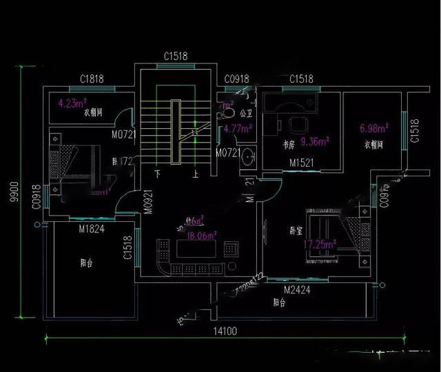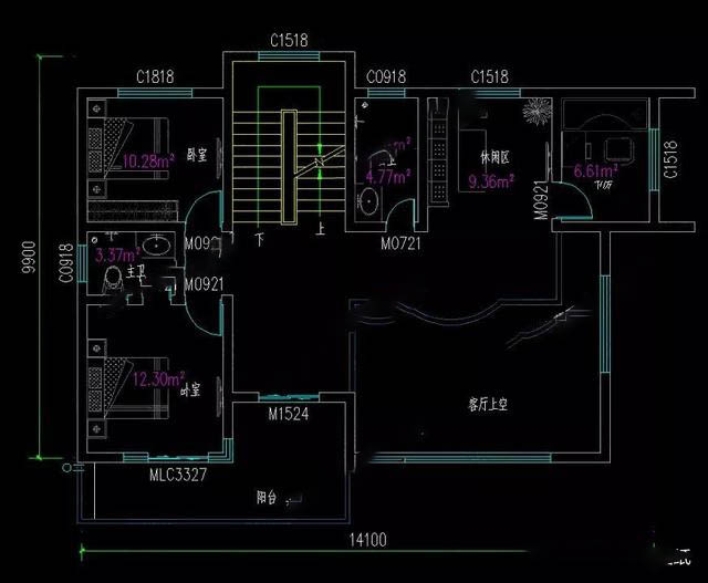三层:2阳台,2卧室(附带衣帽间),卫生间,书房,休息区