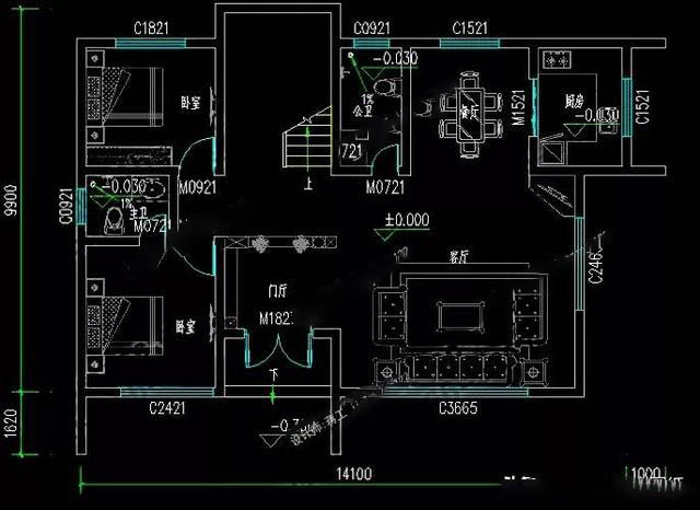 一层:门厅,客厅,2卧室,厨房,餐厅,2卫生间
