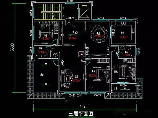占地尺寸:15.76m×13.6m